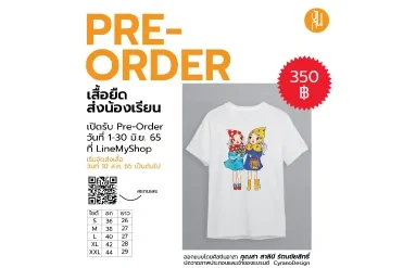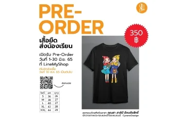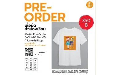 ผู้ที่สนใจสั่งเสื้อยืดส่งน้องเรียน จำหน่ายราคาตัวละ 350 บาท มีทั้งหมด 4 แบบ สินค้าจัดส่งภายในเดือนสิงหาคม 2565