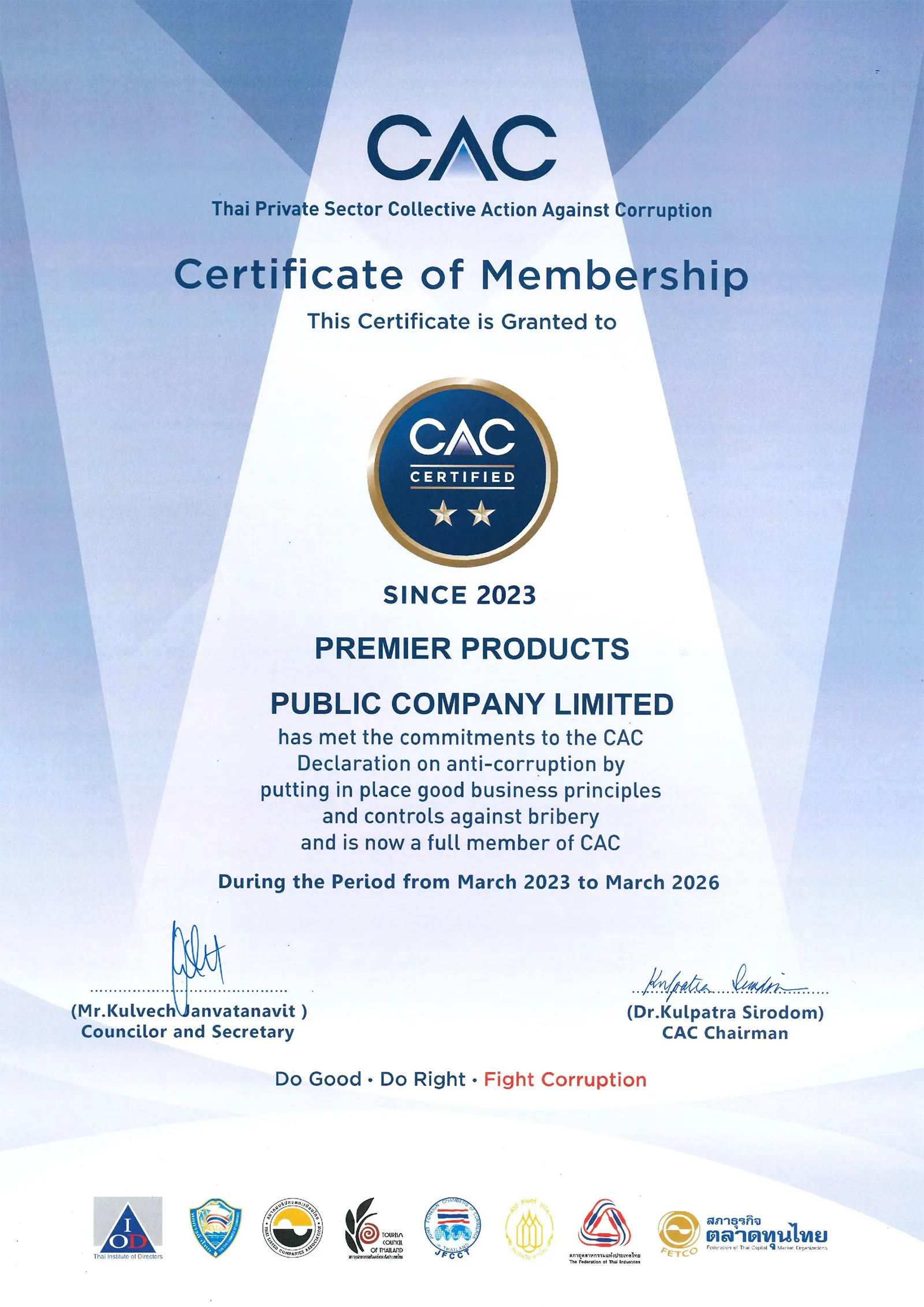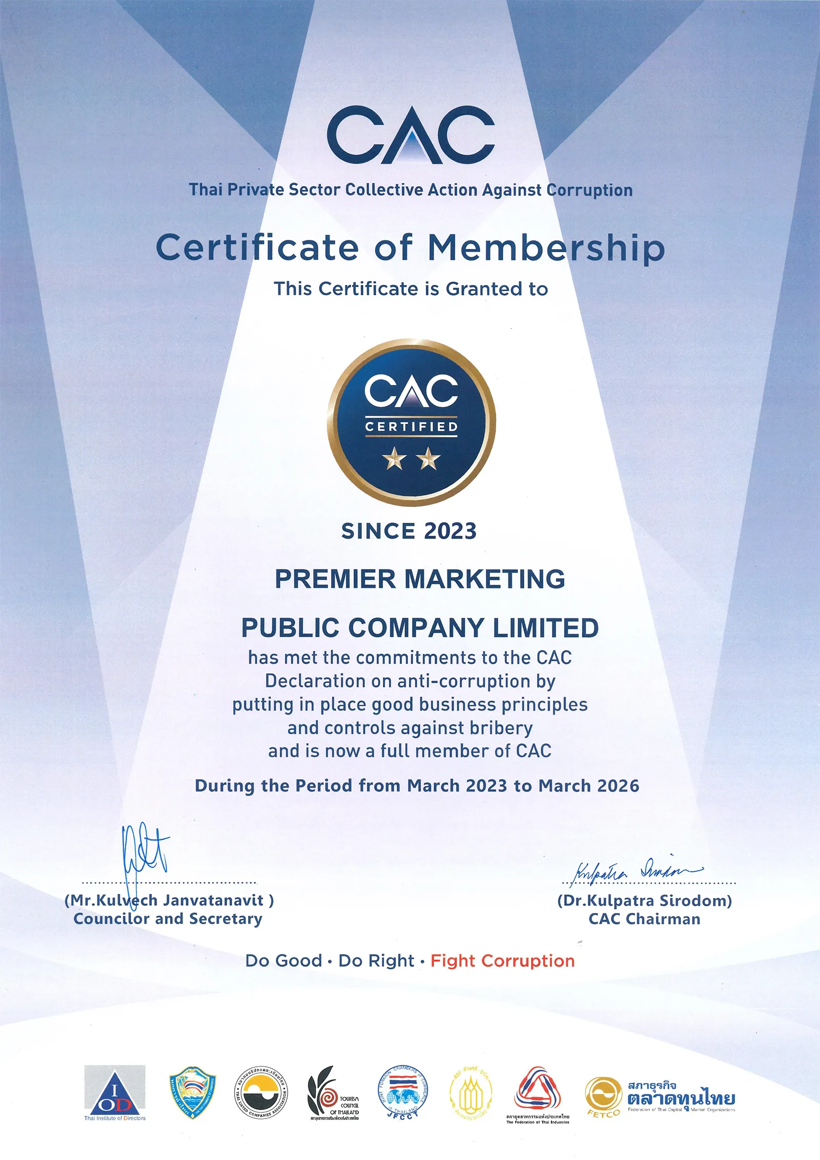 องค์กรต่อต้านคอร์รัปชัน (ประเทศไทย) เป็นหนึ่งในหน่วยงานที่มีพันธกิจด้านการต่อต้านการทุจริตคอร์รัปชัน ที่กลุ่มบริษัทพรีเมียร์ร่วมสนับสนุนฯ มาโดยตลอด เพื่อยกระดับการสร้างกลไกความร่วมมือ มุ่งหวังให้เกิดพลังทางสังคมขนาดใหญ่เพียงพอที่จะสร้างการเปลี่ยนแปลงเชิงระบบ