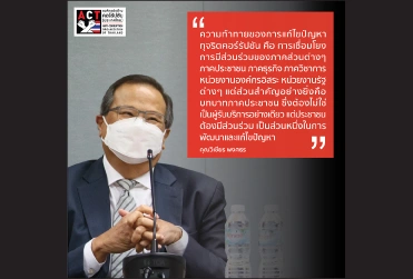 คุณวิเชียร พงศธร “ความท้าทายของการแก้ไขปัญหาทุจริตคอร์รัปชัน คือ การเชื่อมโยงการมีส่วนร่วมของภาคส่วนต่างๆ ภาคประชาชน ภาคธุรกิจ ภาควิชาการ หน่วยงานองค์กรอิสระ หน่วยงานรัฐต่างๆ แต่ส่วนสำคัญอย่างยิ่งคือ บทบาทภาคประชาชน ซึ่งต้องไม่ใช่เป็นผู้รับบริการอย่างเดียว แต่ประชาชนต้องมีส่วนร่วม เป็นส่วนหนึ่งในการพัฒนาและแก้ไขปัญหา“