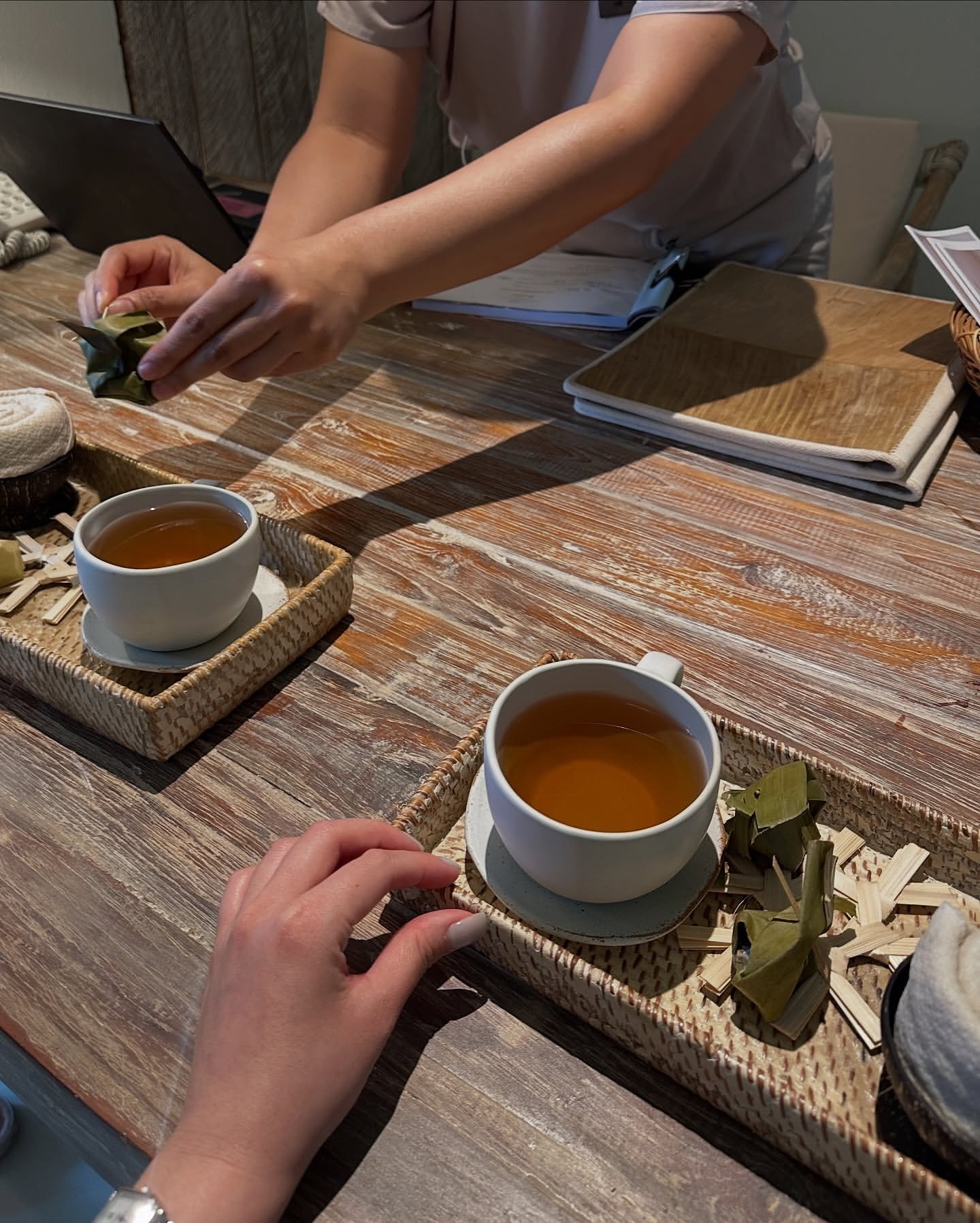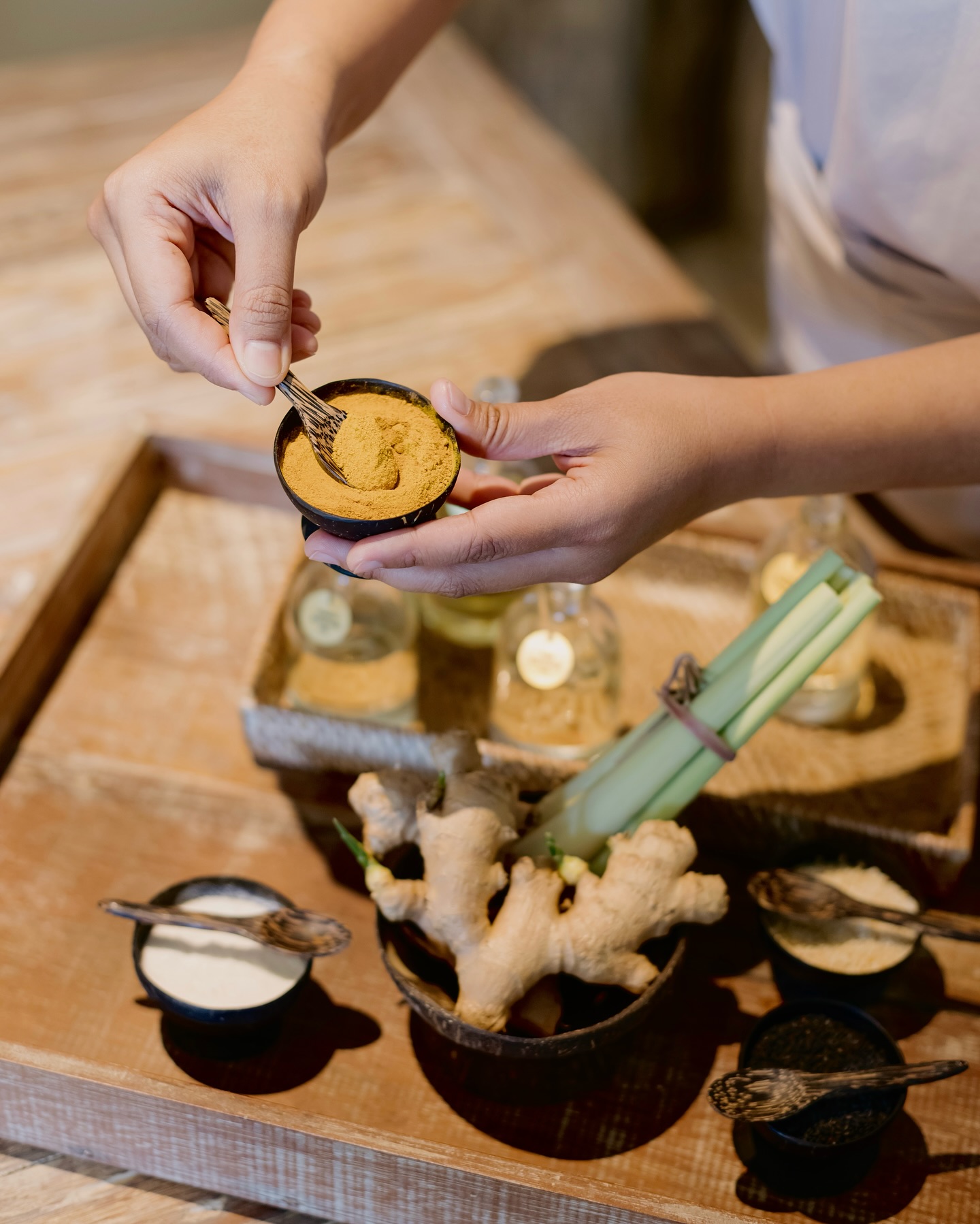 หนึ่งตัวอย่างที่สะท้อนการทำงานร่วมกับชุมชนที่ชัดเจนคือ การพัฒนา “ไอว่าน สปา” ด้วยคอนเซปต์ คือ คำว่า “ไอ” หมายถึงกลิ่นไอหรือไอระเหย ส่วนคำว่า “ว่าน” เป็นภาษาท้องถิ่นเหนือ แปลว่า สมุนไพร จึงสื่อถึงเอกลักษณ์อย่างชัดเจน ว่าเป็นการนำสมุนไพรมาใช้ในห้องสตรีม เพื่อให้ผู้ใช้บริการได้สัมผัสกลิ่นหอมและคุณค่าจากธรรมชาติอย่างแท้จริง เมื่อครั้งทีมออกแบบลงพื้นที่ชุมชนเพื่อมองหาสมุนไพรมาใช้ในสปา ก็เริ่มต้นจากการพูดคุยกับคนในท้องถิ่น เพื่อเรียนรู้ภูมิปัญญาพื้นบ้าน จนได้มีโอกาสพบกับ พ่อครูนิคม พรหมมาเทพย์ ปราชญ์ล้านนา บ้านผญาล้านนา จ.เชียงใหม่ ที่ได้มาร่วมให้คำแนะนำและถ่ายทอดความรู้เรื่องสมุนไพรพื้นบ้าน ทำให้ห้องอบไอน้ำของสปานี้กลายเป็นพื้นที่ที่ผสานศาสตร์ดั้งเดิมกับการออกแบบสมัยใหม่อย่างลงตัว และใส่ใจรายละเอียดการคัดสรรสมุนไพรที่มีสรรพคุณช่วยให้ผ่อนคลาย รู้สึกสดชื่น รวมไปถึงเพื่อรักษาสุขภาพ ตอบโจทย์ความต้องการของผู้ใช้บริการในฤดูกาลที่แตกต่างกัน และกลุ่มนักท่องเที่ยวที่แตกต่างกันในแต่ละช่วงเวลา