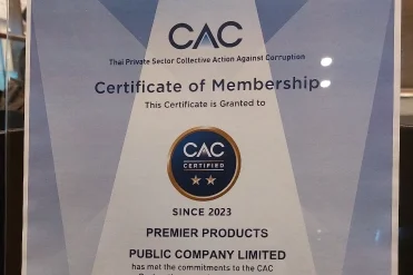 โดยในปี 2566 นี้ บริษัท พรีเมียร์ มาร์เก็ตติ้ง จำกัด (มหาชน) และบริษัท พรีเมียร์ โพรดักส์ จำกัด (มหาชน) ได้รับรองเป็นสมาชิกแนวร่วมต่อต้านคอร์รัปชันของภาคเอกชนไทย เป็นครั้งที่ 3 โดยมี ดร. สมชาย ชุณหรัศมิ์ ที่ปรึกษา กรรมการผู้จัดการ กลุ่มบริษัทพรีเมียร์และที่ปรึกษากรรมการผู้จัดการใหญ่ธุรกิจมหาชน, คุณสุรเดช บุณยวัฒน ประธานกรรมการ และคุณธิติพัทธ์ อดิลักษณ์ธราดล ประธานกรรมการบริหาร บมจ. พรีเมียร์ โพรดักส์ รับมอบใบประกาศนียบัตร CAC เมื่อวันที่ 14 กรกฎาคม ที่ผ่านมา ที่ศูนย์การประชุมแห่งชาติสิริกิติ์ กรุงเทพฯ ตอกย้ำถึงความมุ่งมั่นในการดำเนินธุรกิจด้วยความโปร่งใส และพร้อมเป็นส่วนหนึ่งของการต่อต้านคอร์รัปชัน ยึดหลักธรรมาภิบาล และคุณธรรมจริยธรรม ตามแนวปฏิบัติคุณค่าหลักของกลุ่มบริษัทพรีเมียร์