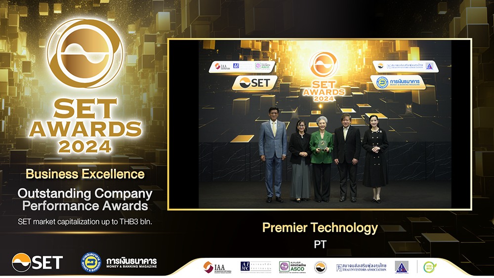 บริษัท พรีเมียร์ เทคโนโลยี จำกัด (มหาชน) (PT) ได้รับรางวัล SET Award 2024 : Outstanding Company Performance Award ในกลุ่มรางวัล Business Excellence จากตลาดหลักทรัพย์แห่งประเทศไทย เมื่อวันที่ 30 ต.ค 2567 ที่ผ่านมา สะท้อนถึงความมุ่งมั่นในการดำเนินธุรกิจด้วยแนวปฏิบัติความสำเร็จร่วมกันอย่างยั่งยืน